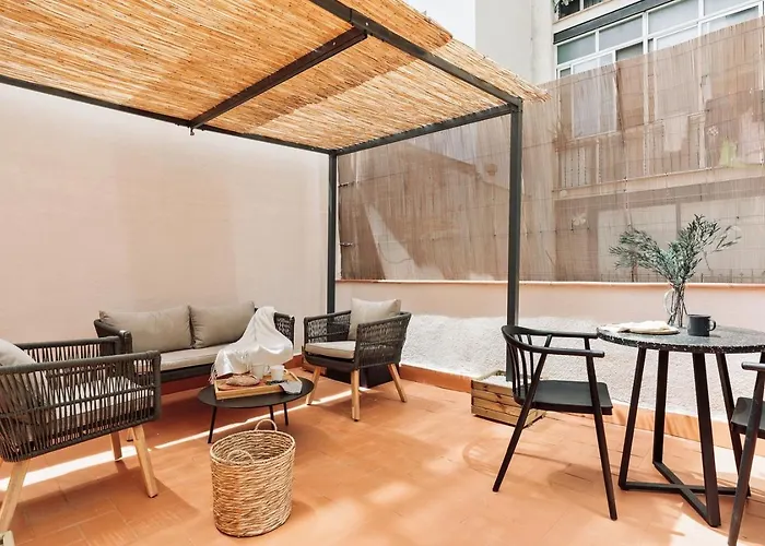The 41 m² Acconci - Studio And Terrace In Eixample Esquerra Barcelona features convenient proximity to such city attractions as the Joan Miró Library, situated approximately 5 minutes' walk away.